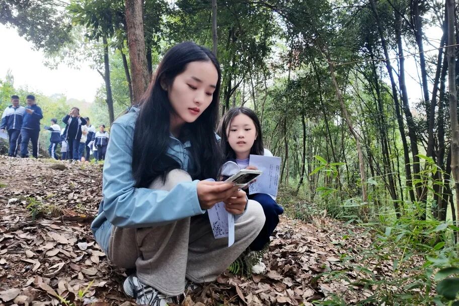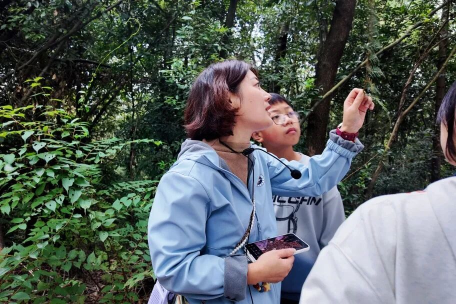 而在林间,缠绕的藤蔓也成为生动的教材。“藤蔓植物自身难以直立,却通过攀附其他物体来争取更多光照,这是它们独特的生存策略。”