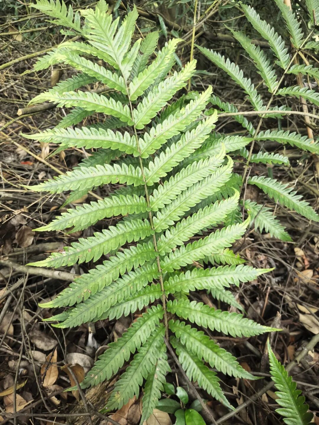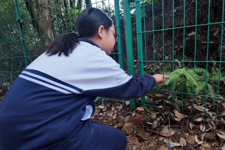 刚踏入山林,一丛丛蕨类植物便吸引了大家的注意。唐老师轻轻掀开一片叶背,指着那些密密麻麻的褐色小点说:“这是蕨类的孢子囊,它们不靠种子繁殖,这些微小的孢子就是生命的延续。”