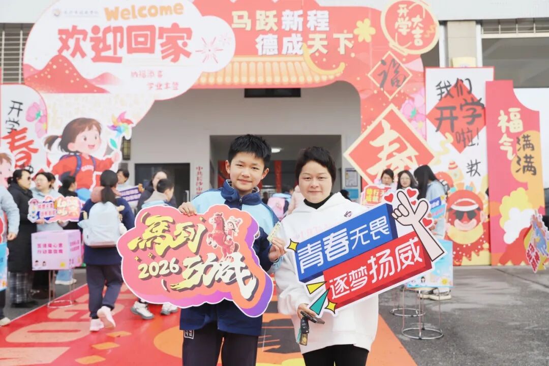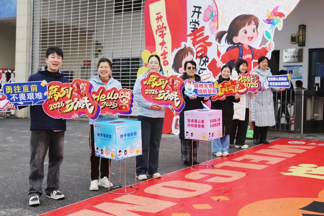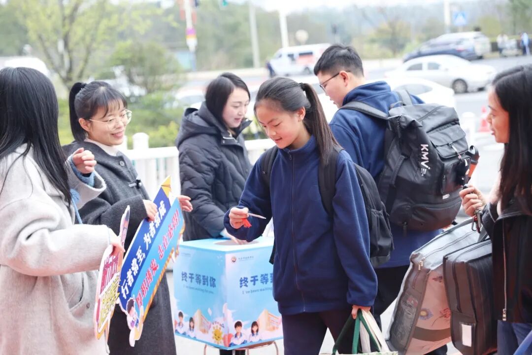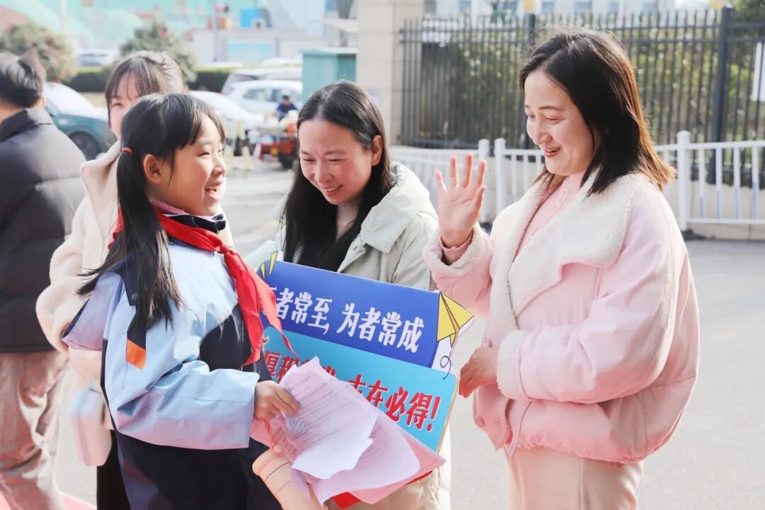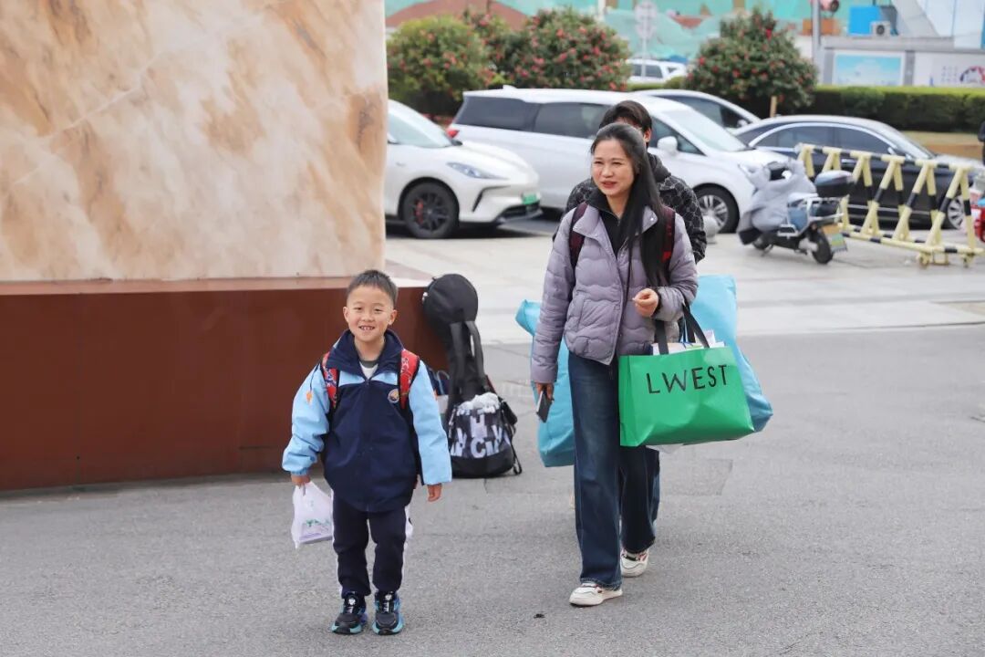 老师们早早守候在校门口,接过行李,牵起小手,送上温暖的微笑。“老师好!”“欢迎回来!”一声声问候,让春日的校园瞬间热闹起来。