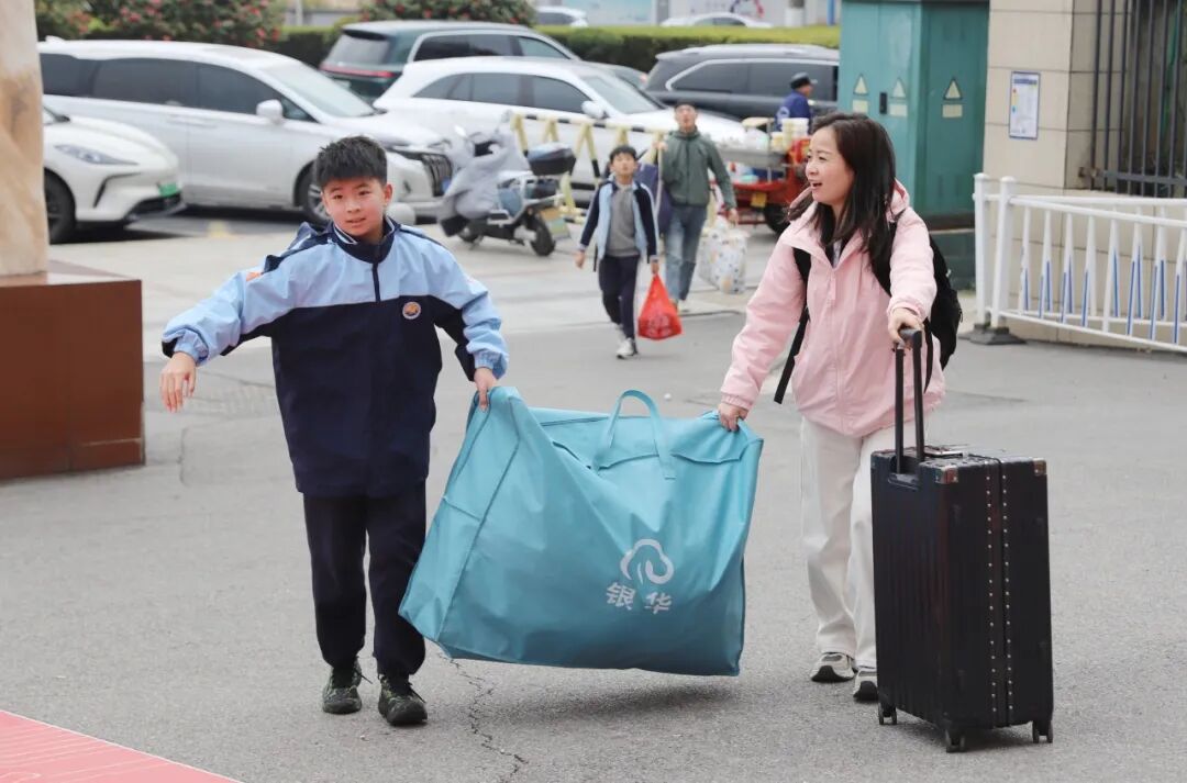 家长们提着大包小包的行李,送孩子走进校门。有的俯身整理衣领,有的轻声叮咛嘱咐。每一次开学,都是一次成长;每一次目送,都是一份深爱。