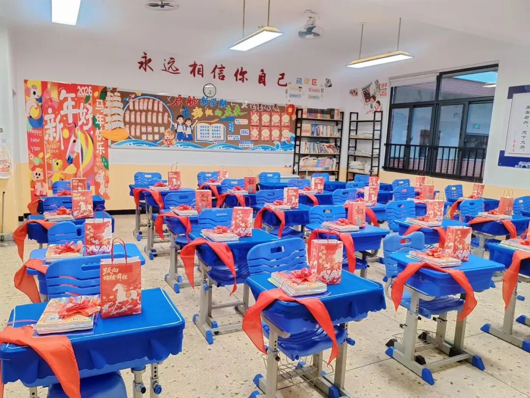 教室里更是惊喜连连,整齐的课桌上,老师早已准备好新学期礼物——或许是一支笔,一颗糖果,一张心愿卡。黑板上写着温馨的欢迎语,开学第一课在欢声笑语中开始,同学们也给自己立下新学期的约定。