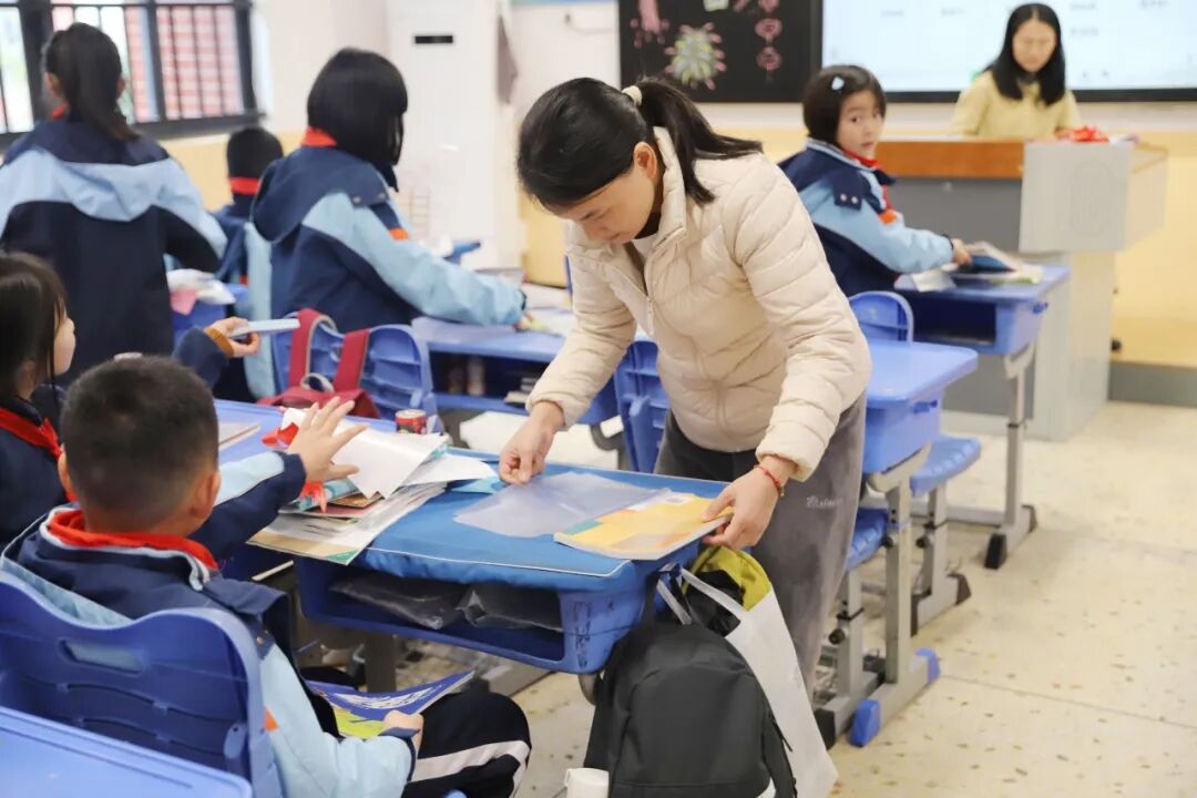 孩子们兴致勃勃地抽取新学期“幸运书签”——“学业进步”“快乐成长”“元气满满”。一枚枚精美的书签,是老师送给孩子们的第一份春日祝福,愿这份幸运伴随整个学期。